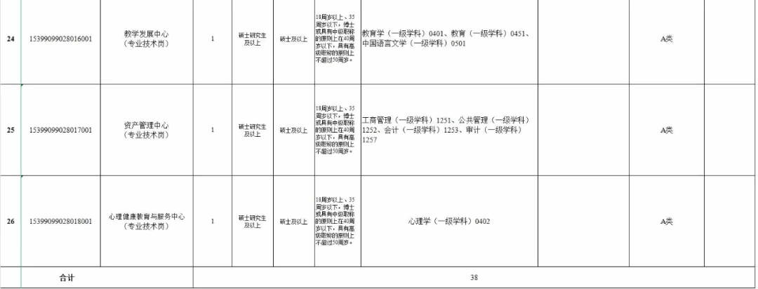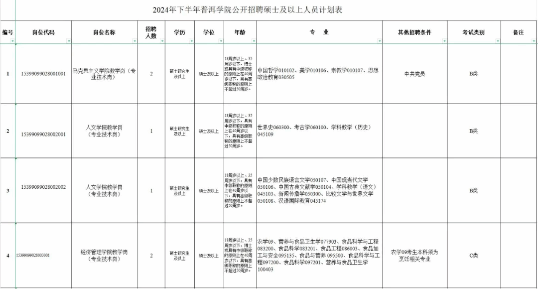 普洱学院共公开招聘硕士及以上人员38名。